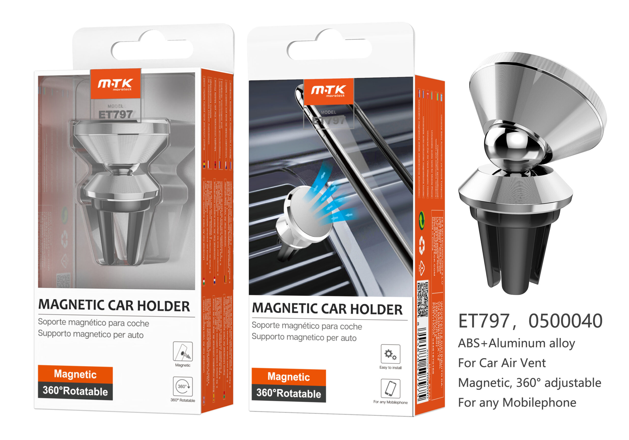 ET797 PL Soporte Universal Magnetica de coche para movil airvent, 360º Rotacion, Plata