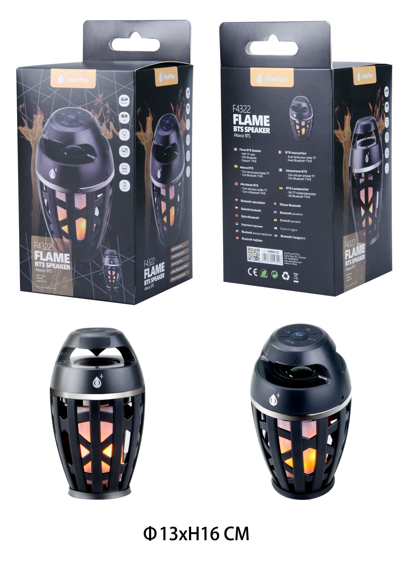F4322 NE Altavoz Bluetooth Flame , funcion TWS/USB/SD,Negro