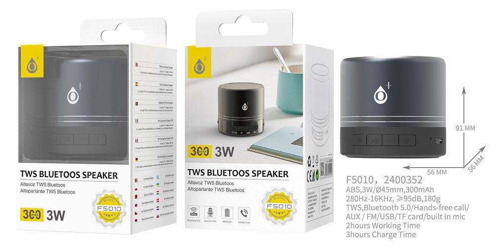 F5010 NE Mini Altavoz Bluetooth Mera,3W, FM/SD/USB/Audio, Negro