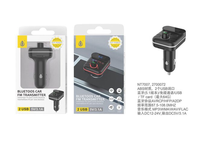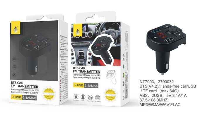 • A6139 NE Transmisor Bluetooth Believe para coche , 2 USB con 3,4A Max, Controlador de llamada y Volumen, FM/USB, Negro