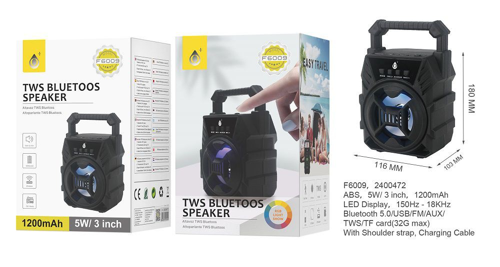 F6009 NE Altavoz Bluetooth Frenzy 5W, FM/SD/USB/Audio,Negro