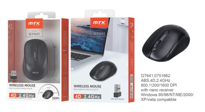 GT641 NE Raton optico inalambrico Krack 2.4GHZ 800/1200/1600 DPI,Negro