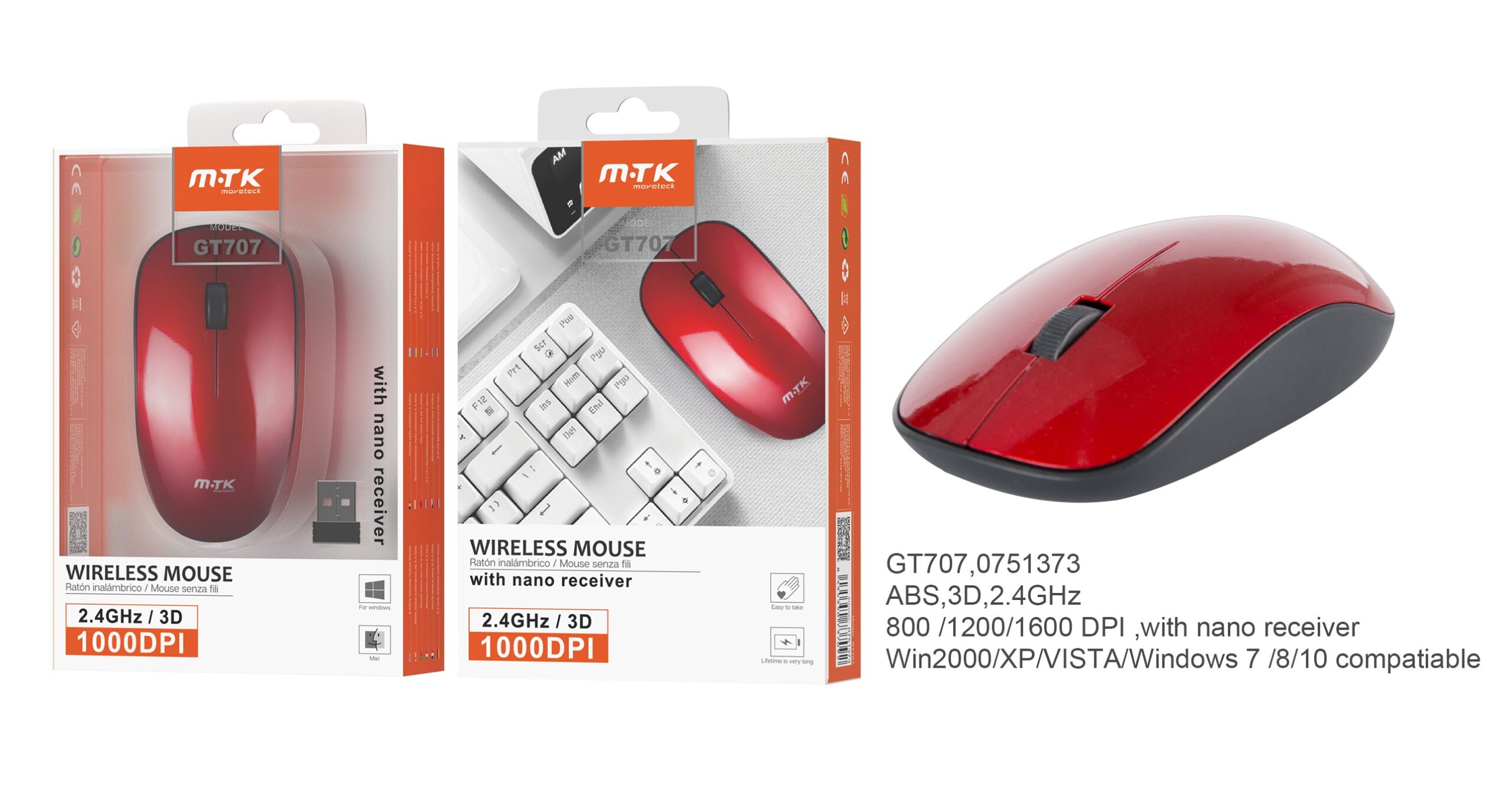 GT707 RJ Ratón Inalámbrico Marte 2,4GHZ, 800/1200/1600 DPI, Rojo