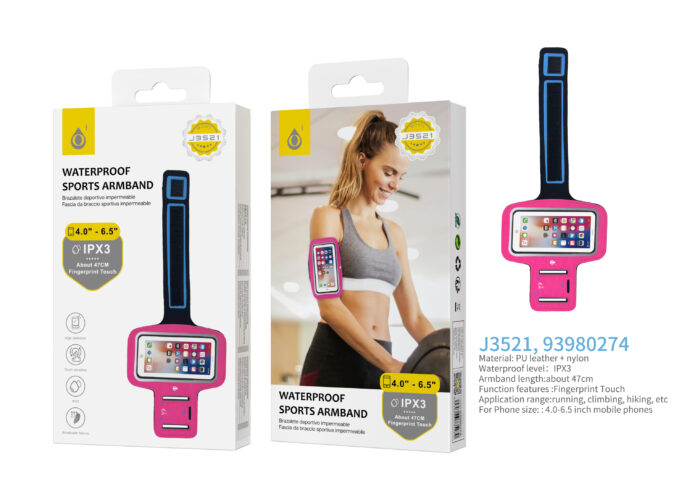 • J3521 AZ Armband Brazalete Deportivo, Tactil Impermeable IPX3, Brazo 47cm, para Movil 4-6.5 Pulgadas, Azul