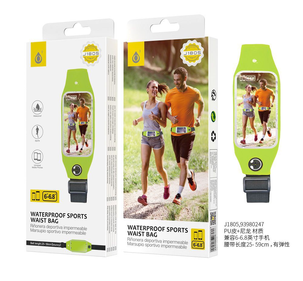 J1805 VR Bolsa de Cintura Deportiva Impermeable para moviles, 6 - 6.8 Pulgadas, Verde