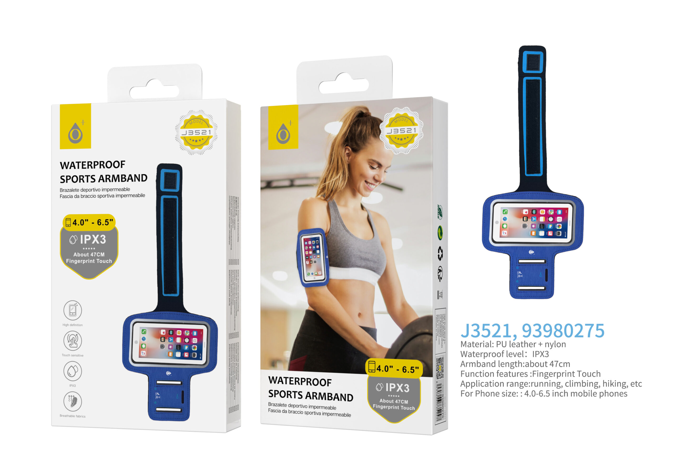 J3521 AZ Armband Brazalete Deportivo, Tactil Impermeable IPX3, Brazo 47cm, para Movil 4-6.5 Pulgadas, Azul