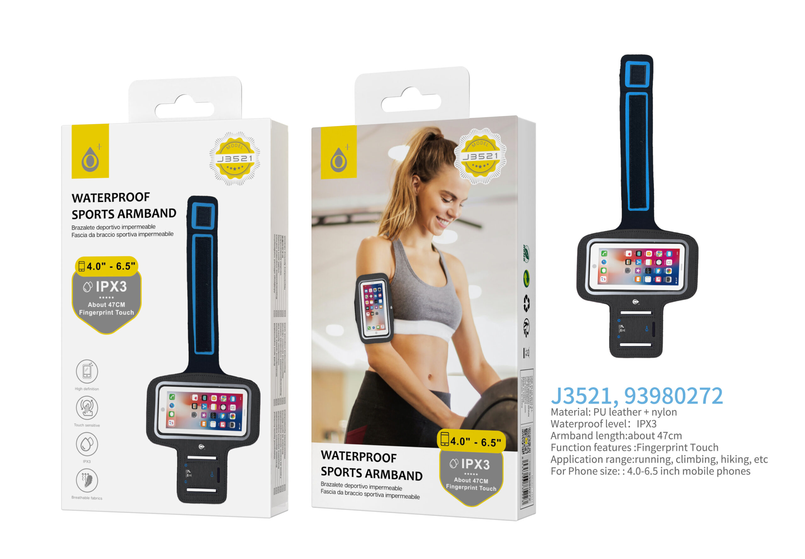 J3521 NE Armband Brazalete Deportivo, Tactil Impermeable IPX3, Brazo 47cm, para Movil  4-6.5 Pulgadas, Negro