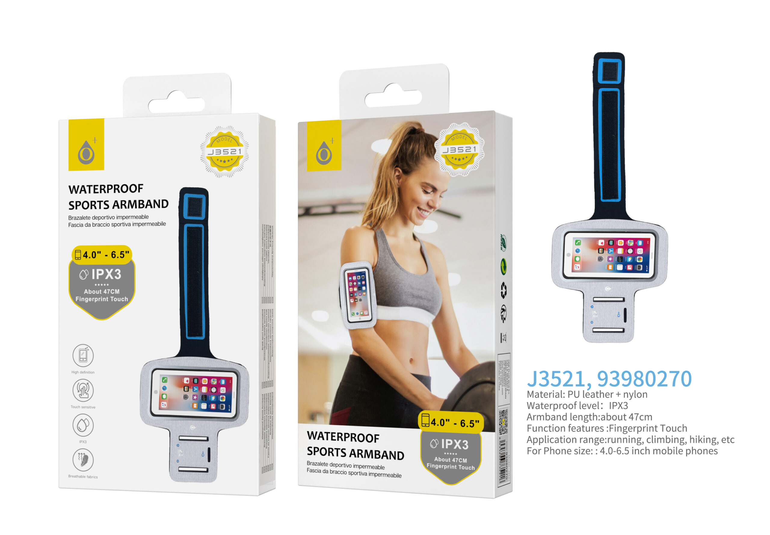 • J3526 AZ Armband Brazalete Deportivo, Tactil Impermeable IPX3, Brazo 47cm, para Movil 4-7.2 Pulgadas, Azul