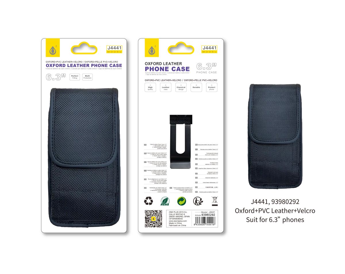 J4441 NE Funda de cinturon vertical para Smartphone con Tela Oxford, Para movil hasta 6.3 pulgadas, Negro