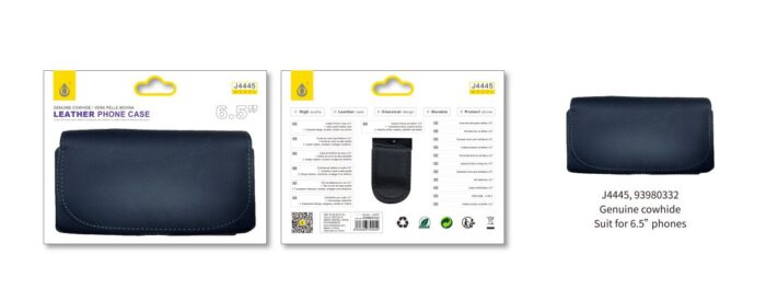 • J4445 NE Funda cinturon de Piel autentico Para movil hasta 6.5 pulgadas, negra