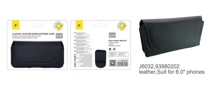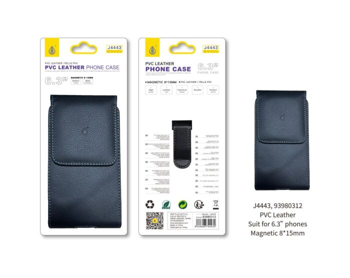 J4443 NE Funda de cinturon magnetico vertical para Smartphone con cuero PVC, Para movil hasta 6.3 pulgadas, Negro