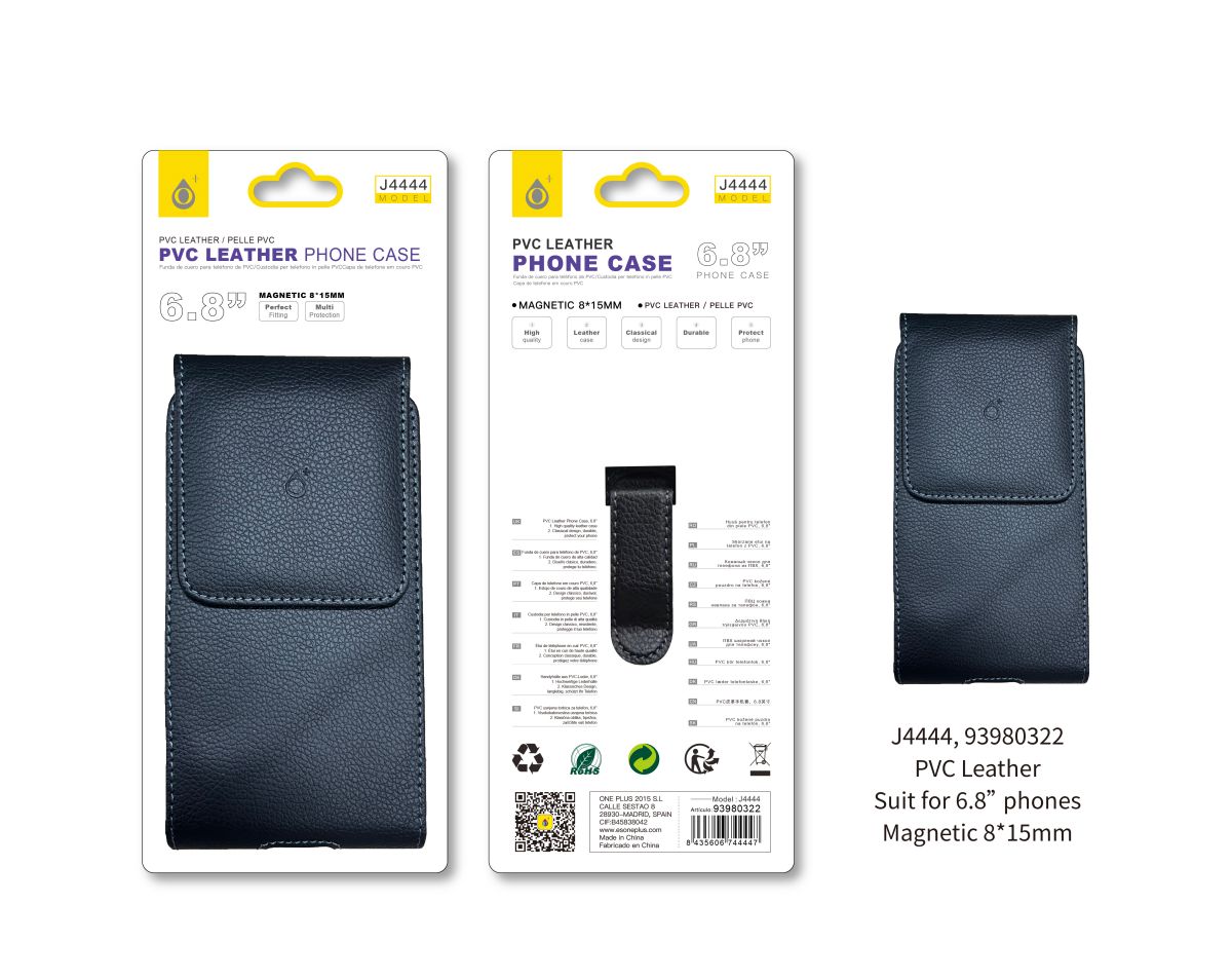J4444 NE Funda de cinturon magnetico vertical para Smartphone con cuero PVC, Para movil hasta 6.8 pulgadas, Negro