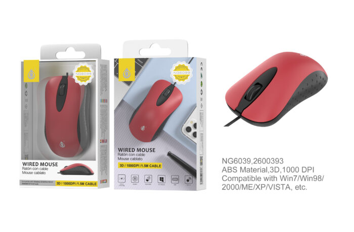 • NG6090 RJ Raton 3D con cable 1.35M, 1000 DPI, Rojo