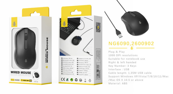 • NG6045 NE Raton optico Cleo con cable,1000 DPI ,1,35M Negro