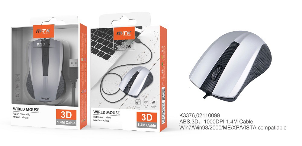 K3376 GR Ratón Óptico Mage con cable Gris