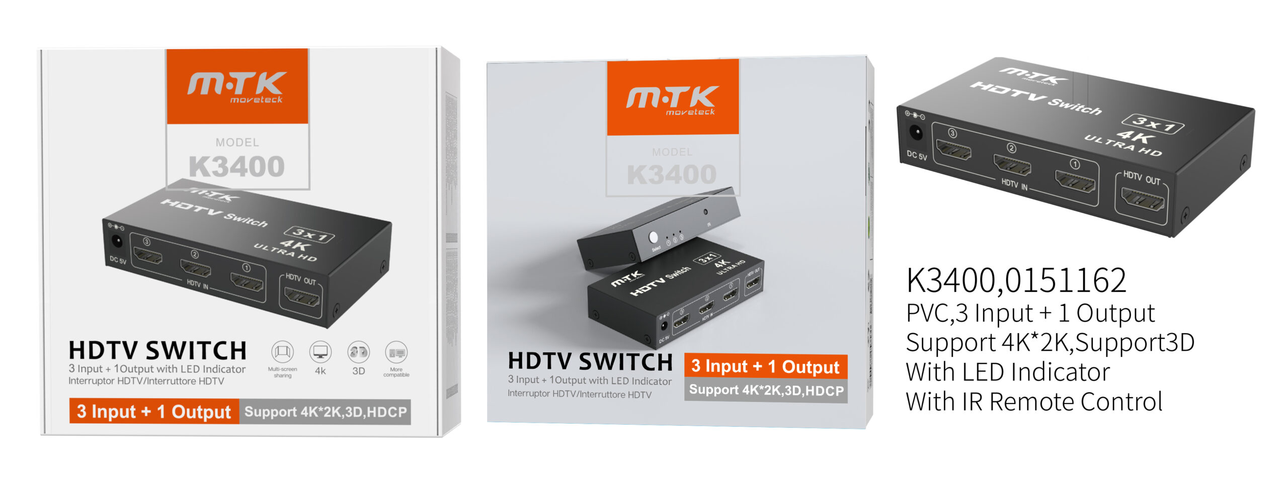 04020132 HDMI SWITCH 3*1 CON MANDO Y ALIMENTADOR
