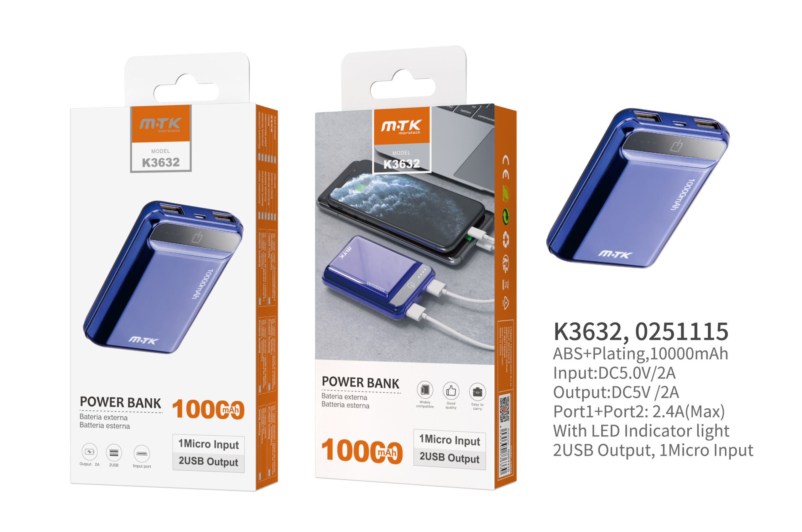 K3632 AZ Power Bank PocketStation 10000mAh, 2USB with LED Indicador, Azul