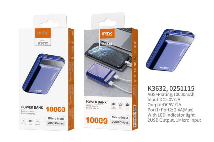 • K3632 AZ Power Bank PocketStation 10000mAh, 2USB with LED Indicador, Azul