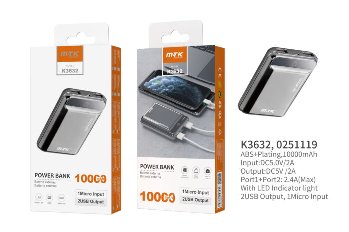 K3632 GR Power Bank PocketStation 10000mAh, 2USB with LED Indicador, Gris