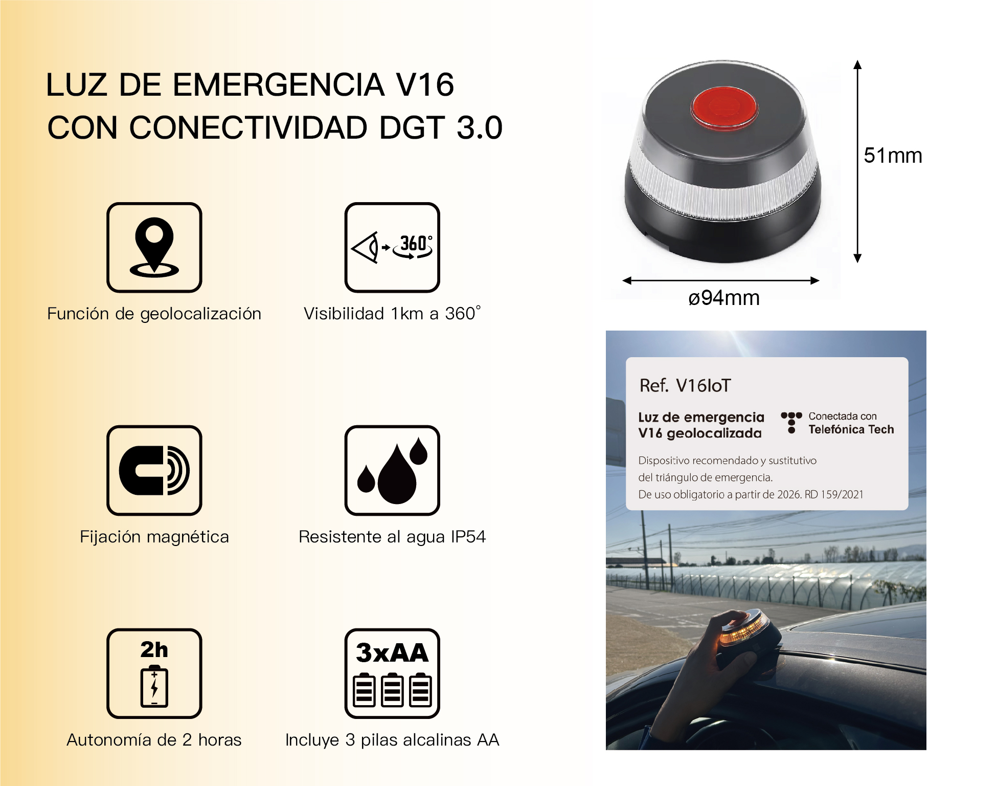 Luz de emergencia V16 con conectividad DGT 3.0 – Homologada DGT