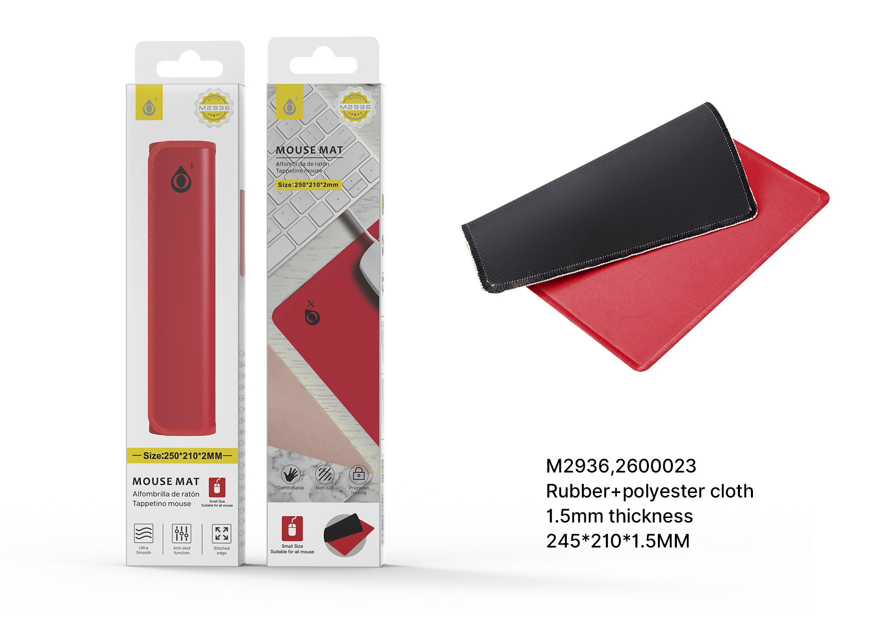 M2936 RJ Alfombrilla de Raton, 25 x 21cm, Rojo