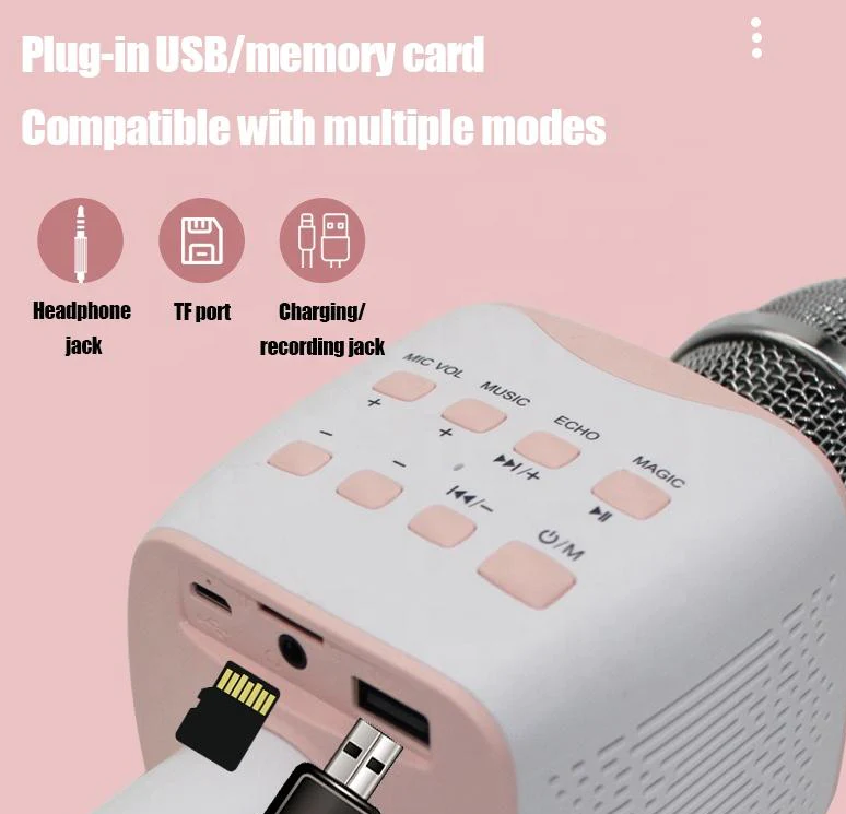 Micrófono Inalámbrico Karaoke Recargable Rosa WR9080 Ikrea