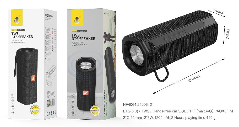 N4064 NE Altavoz Blutooth 6W Estuche ,Con Funcion TWS ,Bateria 1200mAh, BTS 5,0 FM,USB,TF card,Audio Negro