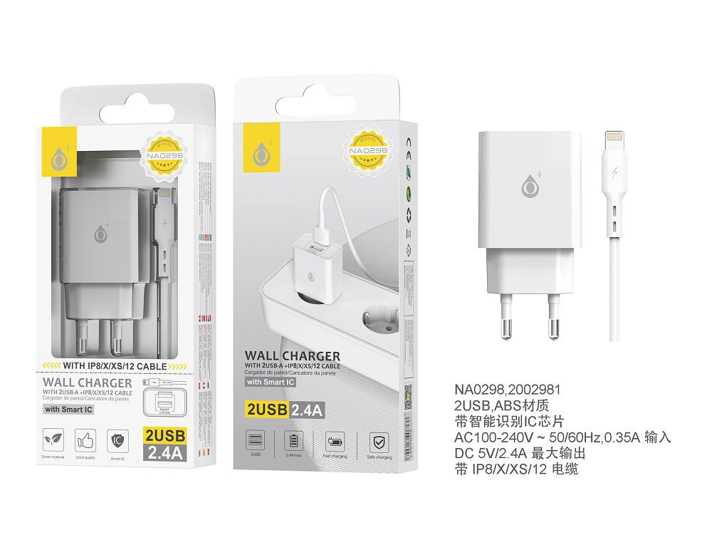 NA0298  BL Cargador  de pared Aaron  con cable   IP 5-13  , con Chip de Reconocimiento Inteligente,2