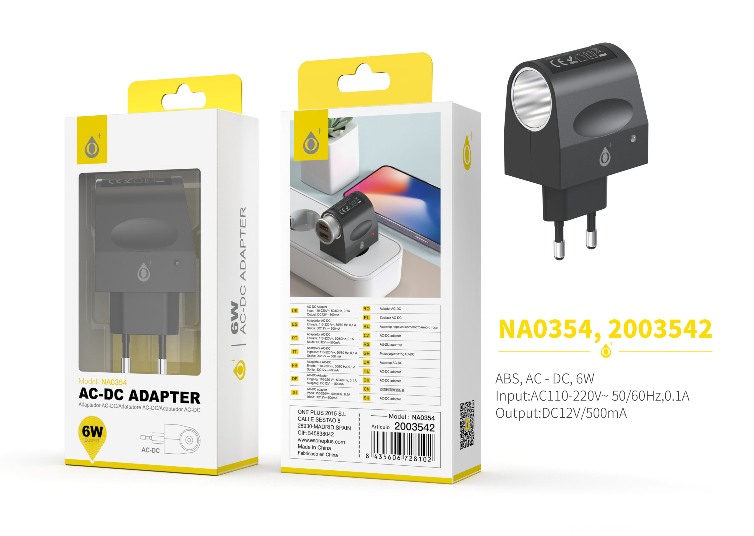 NA0354 NE Adaptador de Corriente AC A DC , Negro