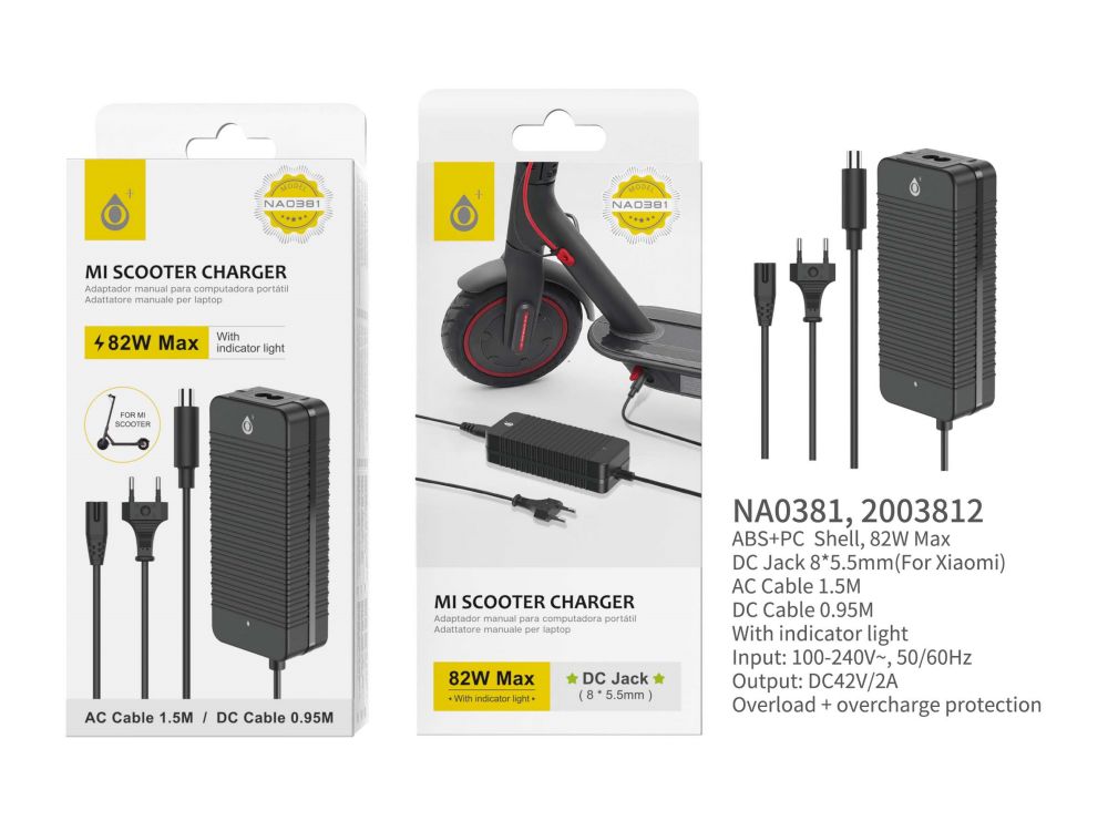 NA0381 NE Cargador de Bateria para Patinete Xiaomi 42V/2A DC(8*5.5mm), 2.45M, Negro