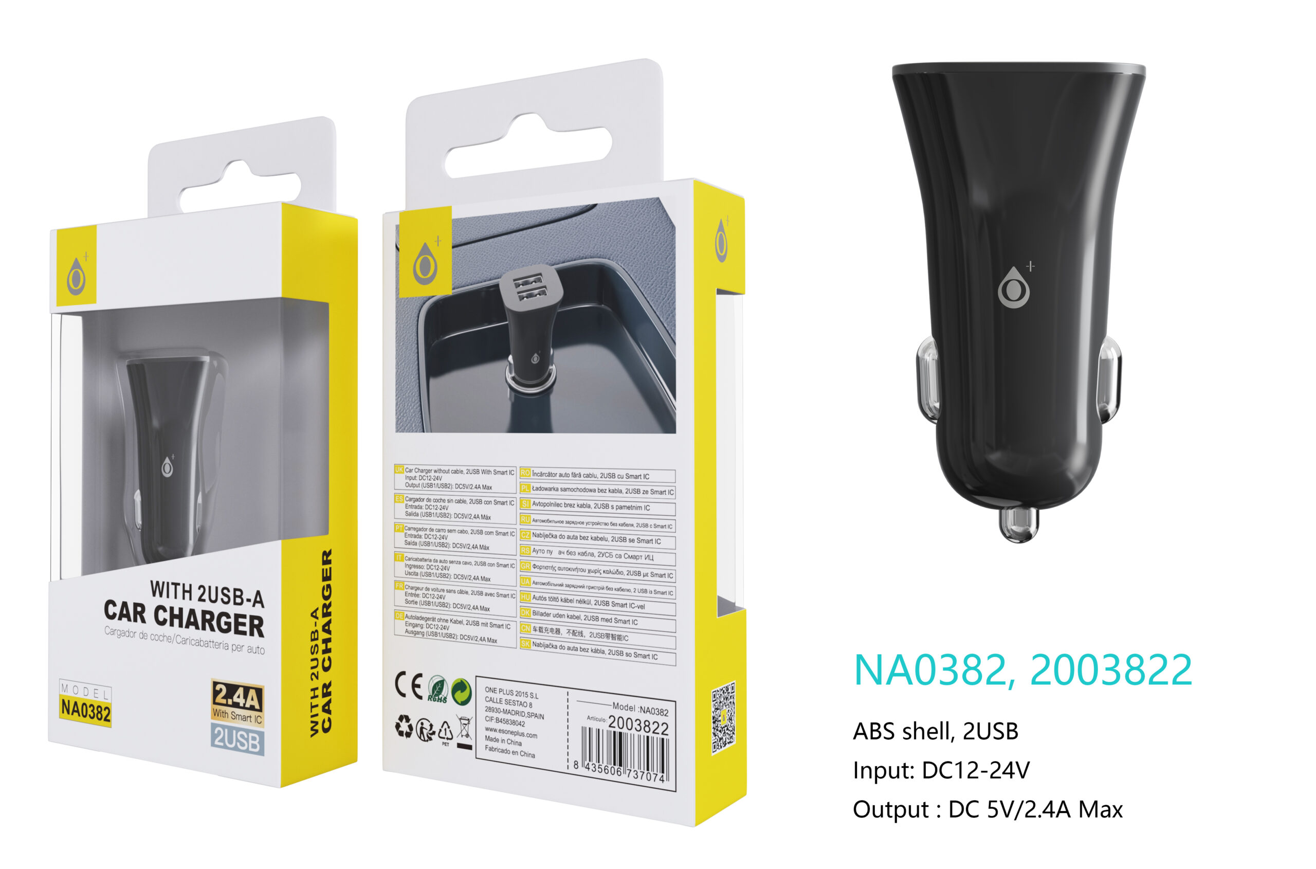 NA0382 NE Cargador de Mechero Carole Con Smart Chip, sin cable , 2USB, 2.4A, Negro