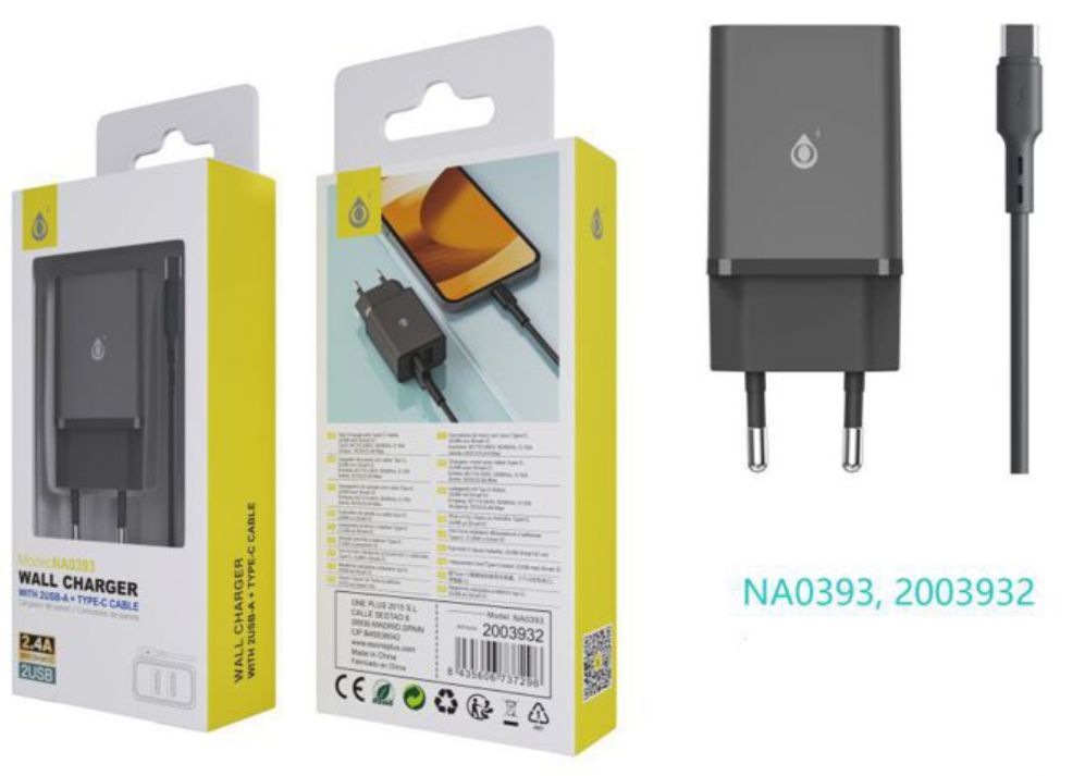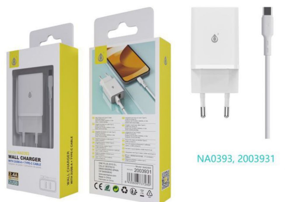 NA0393 CARGADOR DE RED 2.4 A, 2USB – TIPO C