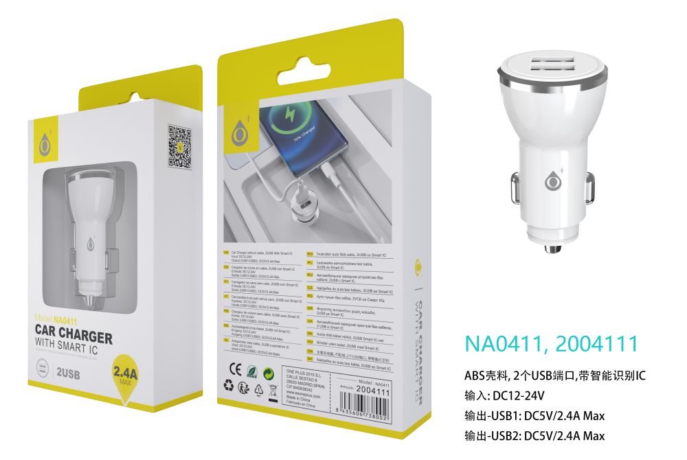 NA0411 BL Cargador de Mechero Anouk Con Smart Chip, sin cable , 2USB, 2.4A, Blanco