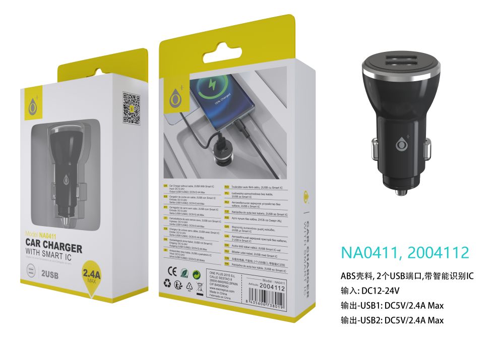 NA0411 NE Cargador de Mechero Anouk Con Smart Chip, sin cable , 2USB, 2.4A, Negro