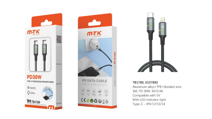 • TB1729 NE Cable de datos 2 en 1 Type-C a Light-ning 12W/ Type-C a Type-C 60W, Compatible con Apple Type-C, 1M, Negro