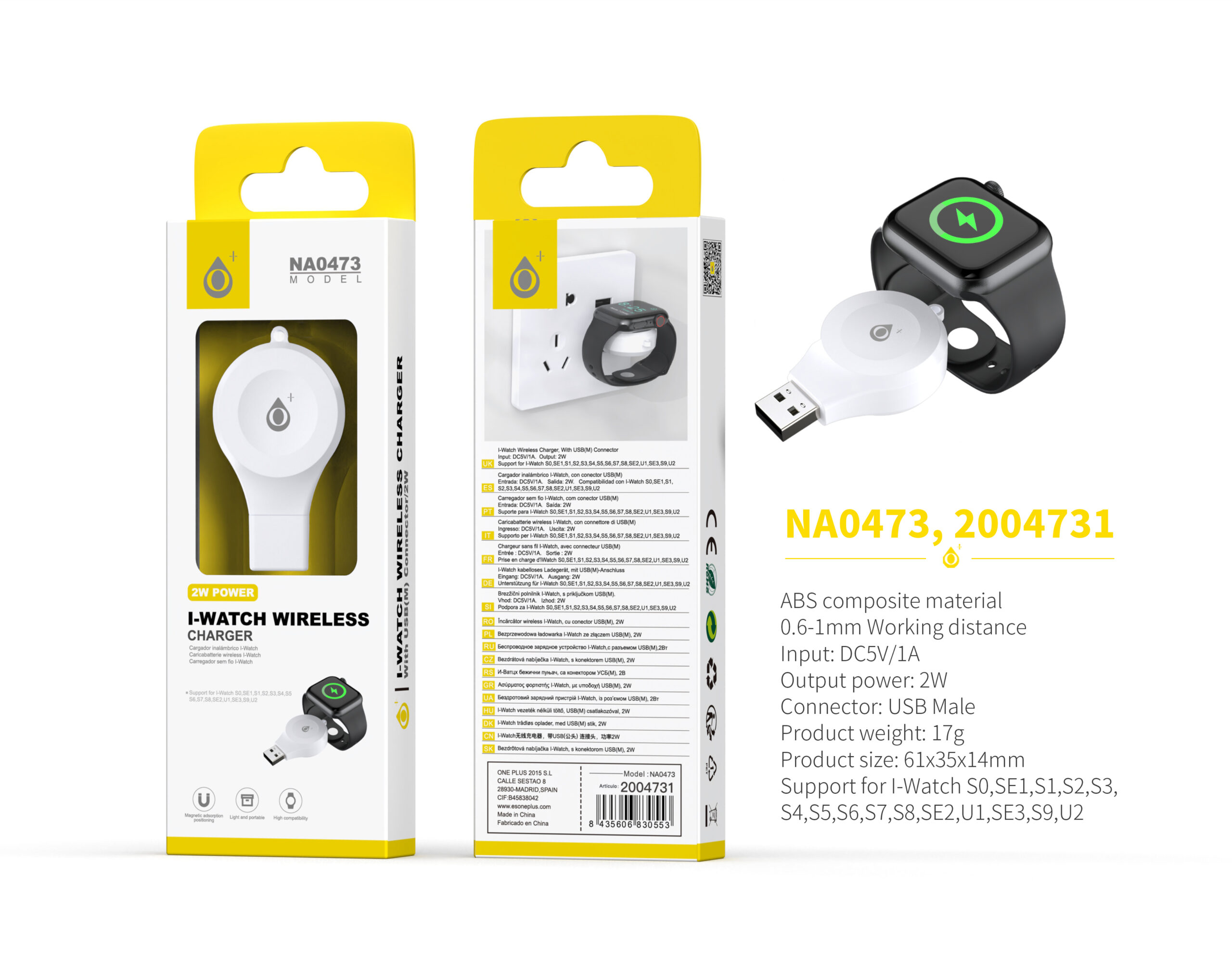 NA0473 BL Cargador inalambrico USB-A para I.Watch, 2W, Blnaco