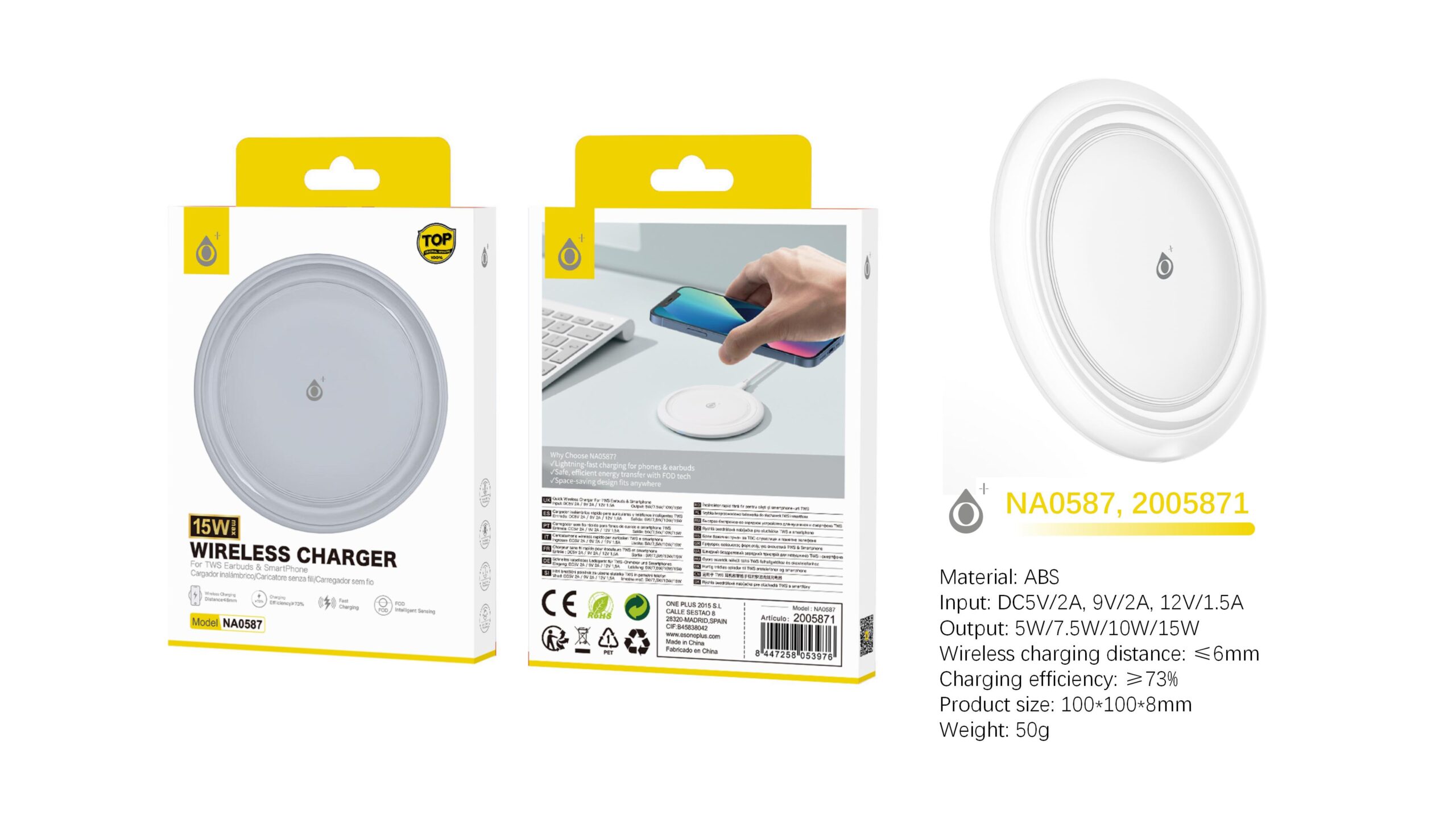 NA0587 BL 15W Max Cargador Inalambrico  para Movil y Auricular, Blanco