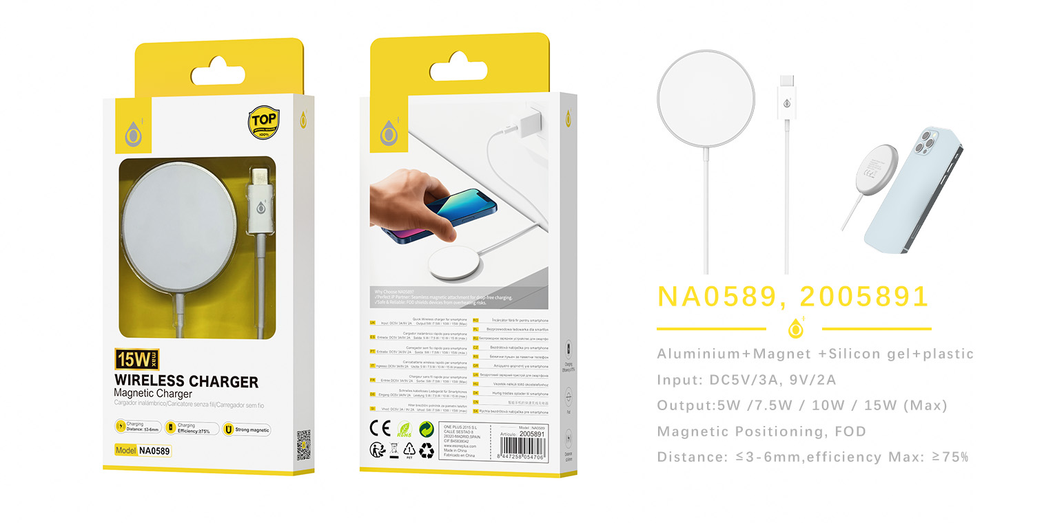 NA0589 BL Cargador Magnetico Inalambrico para moviles 15W(Max) , Blanco