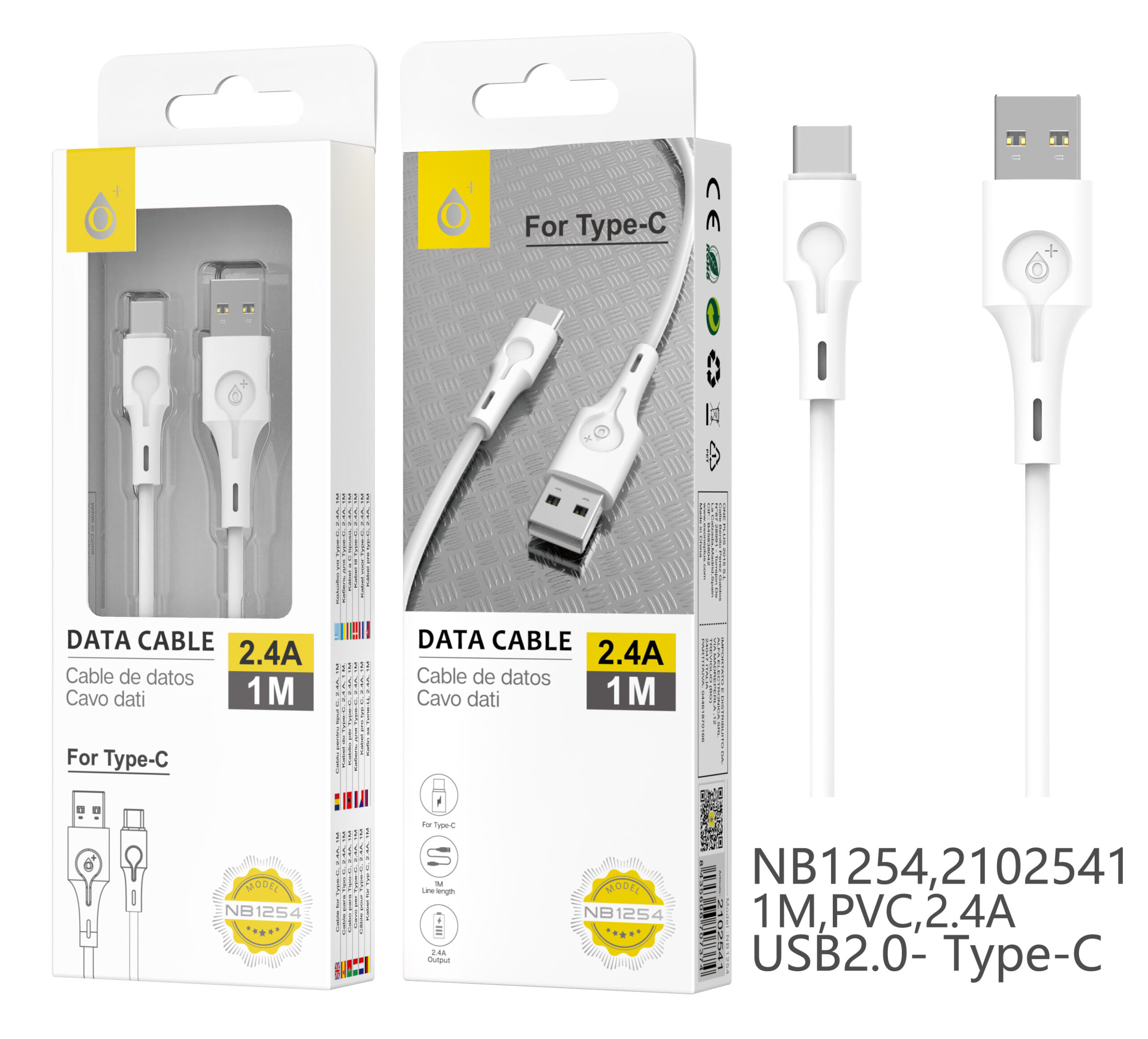 NB1254 BL Cable de Datos Abanico para Type C, 1M 2.4A, Blanco