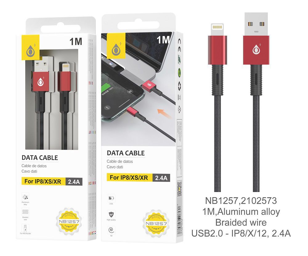 NB1257 RJ Cable de Datos trenzado Thor para IP 5-12, 1M 2.4A, Rojo
