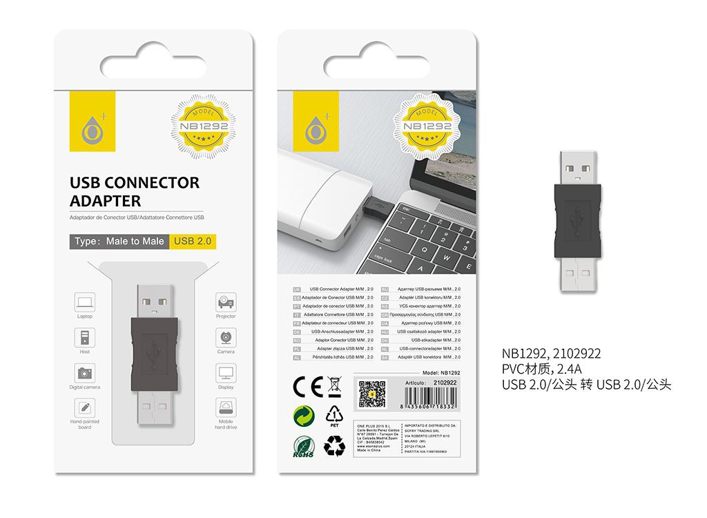 NB1292 NE Adaptador de USB Macho a Macho ,Negro