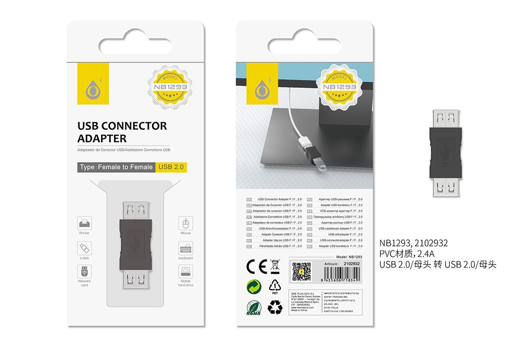 NB1293 NE Adaptador de USB Hembra a Hembra ,Negro