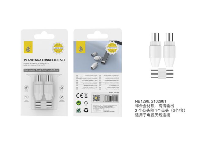 NB1296  BL Conjunto de Clavija TV , 2 unds Macho, 1 und Hembra  ,Blanco