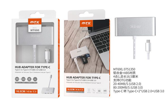 • TR9174 BL Cable de Adaptador Type-C/USB 2.0 Con HUB x3 + Entrada Red RJ45, Blanco