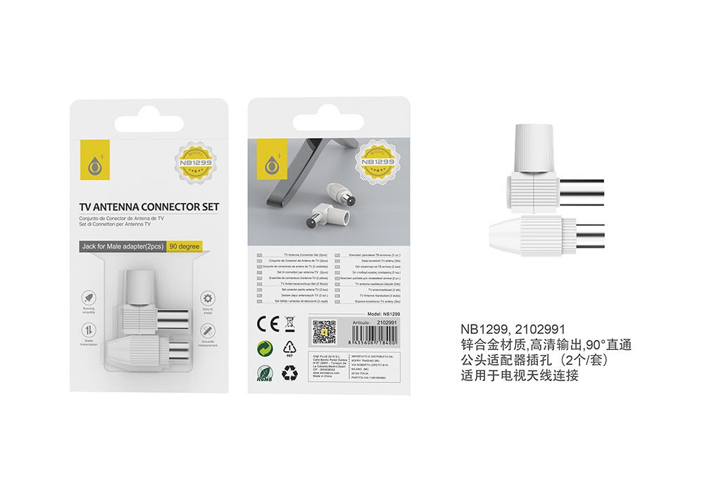 NB1299 BL Clavija TV 90 grados en L ,Blanco