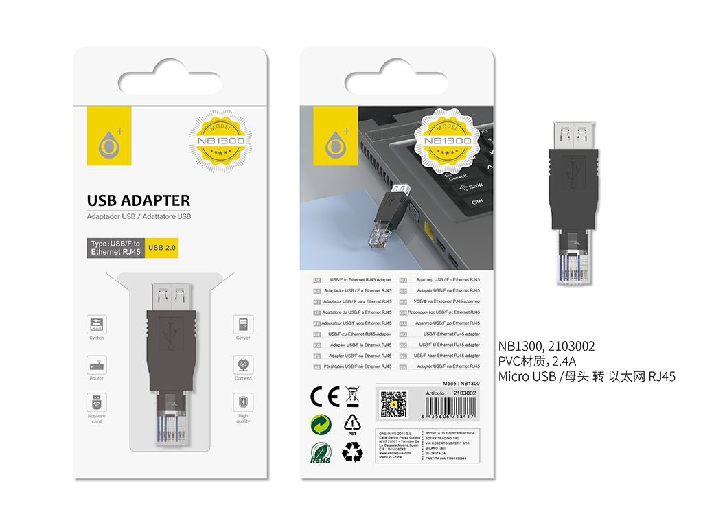 NB1300 NE Adaptador de USB Hembra a Ethernet ,Negro