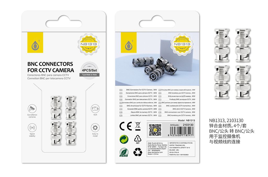 NB1313 PL Conector de BNC Mancho a Macho para Camara CCTV ?PLATA