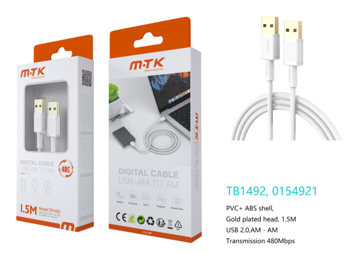 • TB1493 BL Luxury Cable USB 2.0 Macho a Macho, 480Mbps, 2M , Blanco
