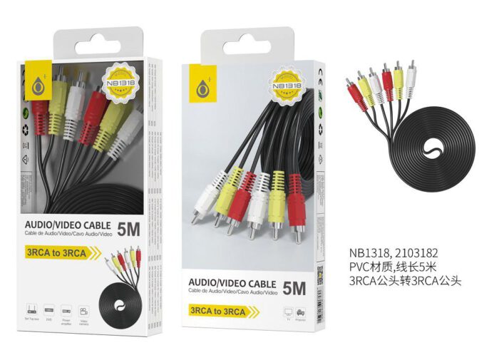 NB1318 NE Cable Audio 3RCA a 3RCA 5M , Negro