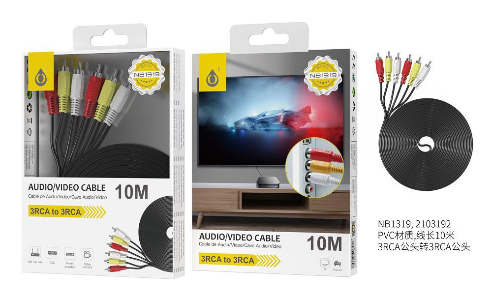 NB1319 NE Cable Audio 3RCA a 3RCA 10M , Negro